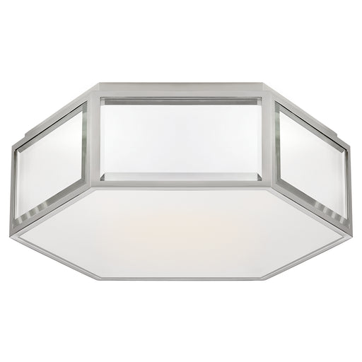 Bradford Small Hexagonal Flush Mount in Mirror and Polished Nickel with Frosted GlassDetails:Product Type: Drum ShadeFinish: Mirror and Polished Ni...