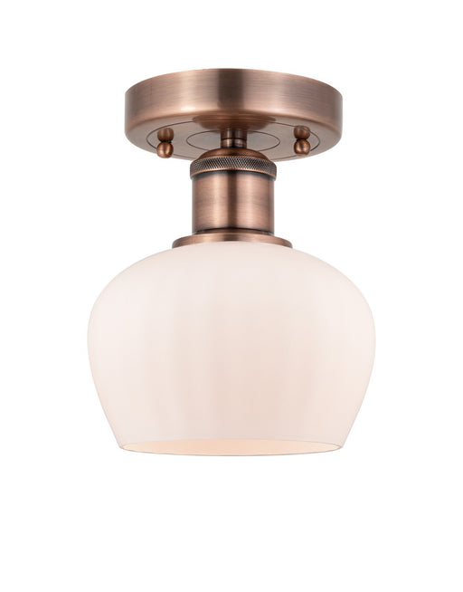 Fenton - 1 Light - 7 inch - Antique Copper - Matte White Shade - Semi-Flush MountDetails:Product Type: Glass DownFinish: Antique CopperShade: Matte...