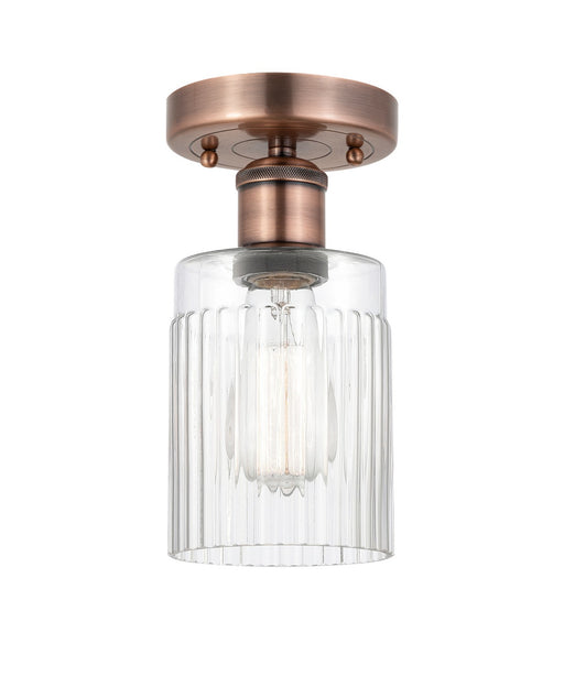 Colton - 1 Light - 6 inch - Antique Copper - Clear Halophane Shade - Semi-Flush MountDetails:Product Type: Glass DownFinish: Antique CopperShade: T...
