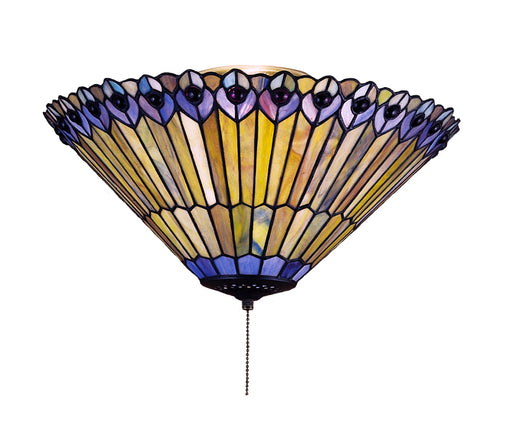 This spectacular ceiling fixture features Mauve with Beige, Pink, Orange, and Gray stained glass that adorn this shade, while feathers feature Turq...