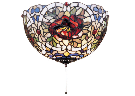 Add beauty and elegance with this Tiffany styled art glass ceiling fixture. The inverted shade features a Red Rose framed in Woodland Green leaves ...