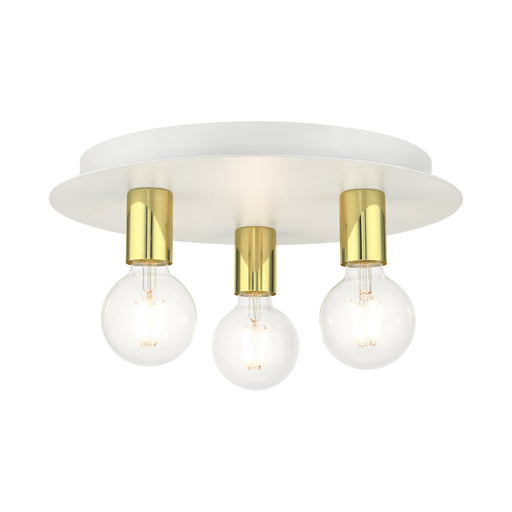View full detailsLivex Lighting 45873-03 Three Light Flush Mount, White w/ Polished Brasss