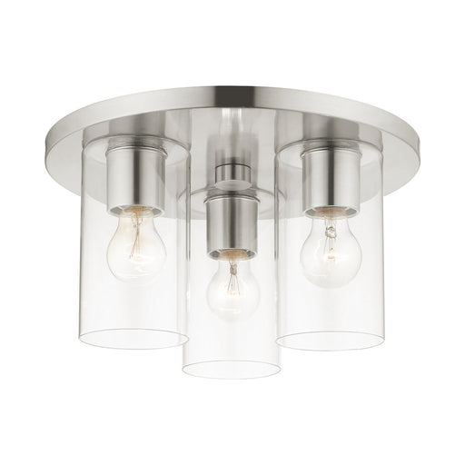 Illuminate your home with a bright design from the Zurich collection. This large three-light flush mount features a brushed nickel finish with clea...