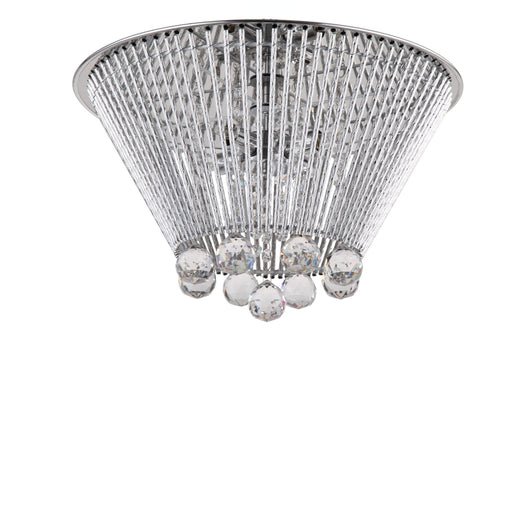 4-Light 17" Crystal Flush Mount with Tapered Chrome Finished Caged Shade and Clear Faceted Crystal Ball Strands.Details:Product Type: Cage StyleFin...