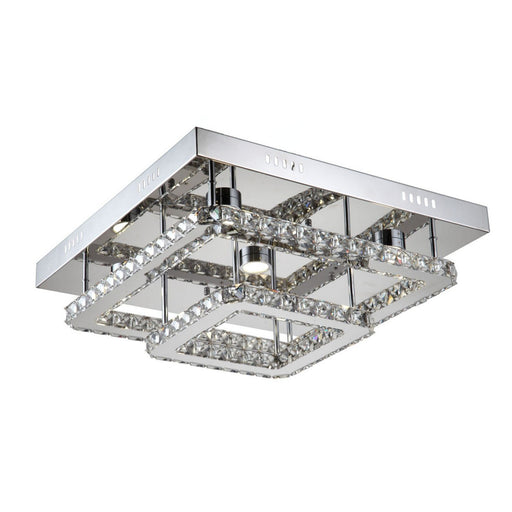 LED 22" 2-Tier Square Layered Modern Clear Faceted Crystal Flush Mount Ceiling Light.Details:Product Type: Drum ShadeFinish: ChromeMeasurements:Wid...