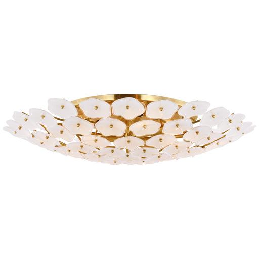 Bryce Large Flower Flush Mount in Gild and White with Frosted AcrylicDetails:Product Type: Drum ShadeFinish: Gild and WhiteShade: Frosted AcrylicDe...