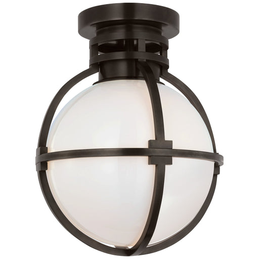 Alderly Flush Mount in Bronze with White GlassDetails:Product Type: Bowl StyleFinish: BronzeShade: White GlassDesigner: Chapman & MyersMeasurem...