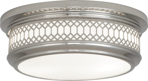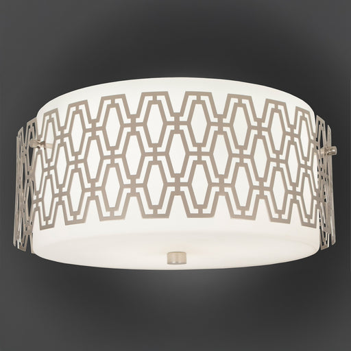 Polished Nickel Chase Flushmount With White Glass Shade - Chase is an attractive collection with a crisscrossed, metal frame work that provides a l...
