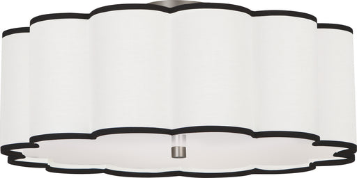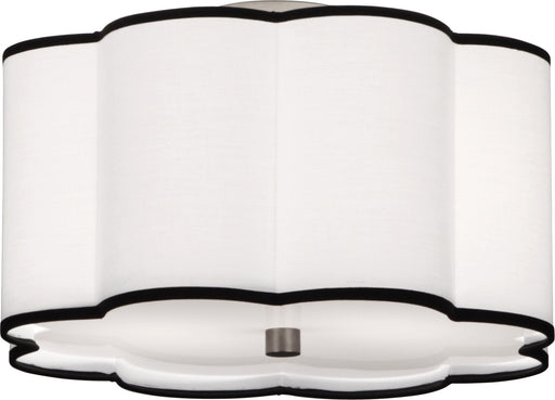 Blackened Antique Nickel Finish Axis Flushmount With Scalloped Ascot White Fabric Shade with Contrasting Trim - Axis features a scalloped design th...