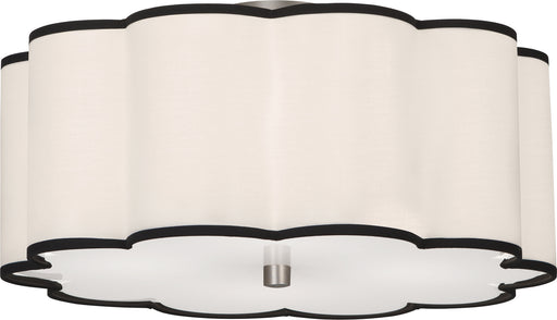 Blackened Antique Nickel Finish Axis Flushmount With Scalloped Ascot White Fabric Shade with Black Contrasting Trim - Axis features a scalloped des...