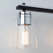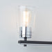 The Essex collection features elegant clear glassware, adding a touch of sophistication to any bathroom decor. Its standout design is characterized by a striking dual-tone finish, combining sleek black and chrome elements seamlessly. This collection effortlessly blends modern aesthetics with functional utility, creating a stylish focal point for your bathroom space. 4 light wall sconce shown. (Also available in a single and 3 light versions.)