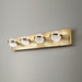 This luxurious bath bar features elegant ice crystal orbs that are fastened by a center ring. The multifaceted surface reflects light in a dazzling way onto the backplate for added glow. A glamorous addition to any space, these lights are sure to add ambience.