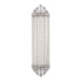 Fluted cast metalwork clasps Albion`s shimmering array of polished rods. The broad rods, beveled on each end, are arranged in tapering order before a frosted glass diffuser. Combining the bright light and energy efficiency of LED with the glamour of Art Deco style, Albion is a winning wall sconce or bath and vanity piece, sure to endure in both style and substance.