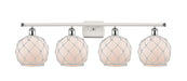 Farmhouse Rope - 4 Light - 38 inch - White Polished Chrome - White Glass with White Rope Shade - Bath Vanity Light