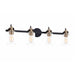 Justice Designs FSN-8194-CLER-MBBR Four Light Bath Bar, Matte Black w/ Brass