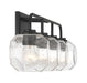 The Baldwin 4-light bath vanity light brings a unique geometric appeal to bathrooms with its clear seeded glass shades that are molded into octagonal facets. These bold shades take center stage and pair nicely with the matte black finish. Baldwin is 9.5" in height, 32" in width and extends 7.5" from the wall. It uses 4 standard size bulbs of up to 60 watts per bulb (bulbs not included).