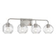 The Baldwin 4-light bath vanity light brings a unique geometric appeal to bathrooms with its clear seeded glass shades that are molded into octagonal facets. These bold shades take center stage and pair nicely with the satin nickel finish. Baldwin is 9.5" in height, 32" in width and extends 7.5" from the wall. It uses 4 standard size bulbs of up to 60 watts per bulb (bulbs not included).