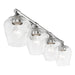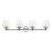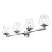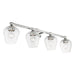 This four light vanity sconce from the willow collection has understated elegance. It features minimal details, clear curved glass with a polished chrome finish and can fit into any decor.