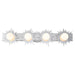 Looking to lighten up your space with a whimsical and art-inspired piece? Designed using a statement-making sun shape , this four-light vanity light is the favorite pick for installing over your favorite mirrors and double sinks. Creating an eye-catching focal point, this 4- light star shaped bath light is unique enough to work in the most sophisticated spaces, and using the polished chrome finish to add a little more drama to your bathroom space. Measuring 32" in length, 8.5" in height and 4.5" in depth, the Soleil bathroom light can easily help to updated bathroom.