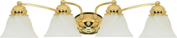 The Empire 4 light, 29 inch vanity features a polished brass finish, accented with alabaster glass bell shades. Illuminate bathrooms, hallways, foyers, or any room in the home that could use some extra lighting with this easy to install vanity. Stylish and elegant, impress your guests with this sophisticated vanity fixture.