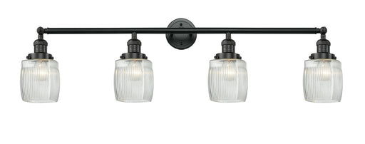 Colton - 4 Light - 42 inch - Matte Black - Clear Halophane Shade - Bath Vanity LightDetails:Product Type: Four LightsFinish: Matte BlackShade: Thic...