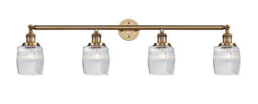 Colton - 4 Light - 42 inch - Brushed Brass - Clear Halophane Shade - Bath Vanity LightDetails:Product Type: Four LightsFinish: Brushed BrassShade: ...