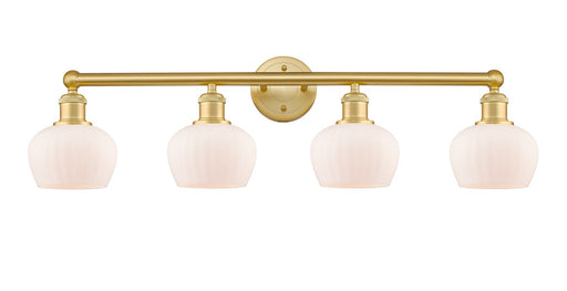 Fenton - 4 Light - 34 inch - Satin Gold - Matte White Shade - Bath Vanity LightDetails:Product Type: Four LightsFinish: Satin GoldShade: Matte Whit...