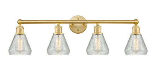 Conesus - 4 Light - 33 inch - Satin Gold - Clear Crackle Shade - Bath Vanity LightDetails:Product Type: Four LightsFinish: Satin GoldShade: Clear C...