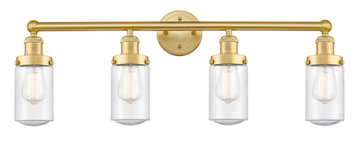 Dover - 4 Light - 32 inch - Satin Gold - Clear Shade - Bath Vanity LightDetails:Product Type: Four LightsFinish: Satin GoldShade: Clear DoverRooms:...