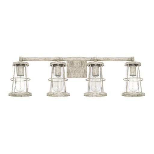 4 light vanity with Mystic Sand finish and clear glass.Details:Product Type: Four LightsFinish: Mystic SandShade: Clear 2.75``x7``Rooms: Bath, Powd...