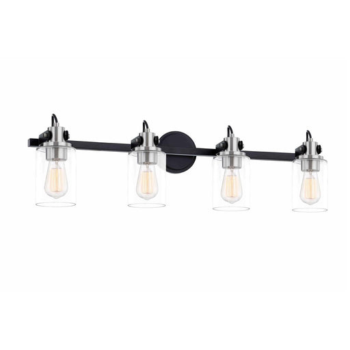 Details:Product Type: Four LightsFinish: Matte BlackShade: Clear GlassMeasurements:Width / Dia: 34.75"Height: 8.25"Extension: 6.00"Canopy: 6.75" W ...