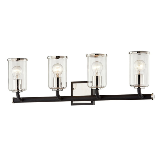 Bistro Four Light Bath Sconce in Polished Nickel and Black with Clear GlassDetails:Product Type: Four LightsFinish: Polished Nickel and BlackShade:...