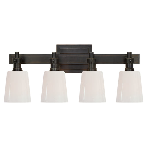 Bryant Four-Light Bath Sconce in Bronze with White GlassDetails:Product Type: Four LightsFinish: BronzeShade: White GlassDesigner: Thomas O'BrienMe...