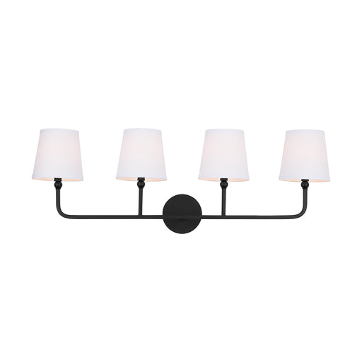 Details:Product Type: Four LightsFinish: Matte BlackShade: White Fabric Stay-Straight ShadesRooms: Bath, Powder RoomMeasurements:Width / Dia: 35.25...