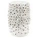 The Barnacle White Side Table is made by a group of women who live at the border of Burma and Thailand. Made from ceramic, this incredible hand-thrown table is completely covered in handmade ornamentations that look like small barnacles. Once the decorative elements are in place, the vase is glazed with an antique white that provides the table with its depth and personality.