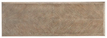 The wire-brushed and cerused finish on our Sayan Pepper Console Table, which we call light pepper, highlights the wood grain on this oak console table. Aimee Kurzner was thinking of the natural modern trend when she designed this product, which was inspired by her travels in Indonesia.