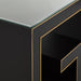 With the Artemis Black Writing Desk, Barry Goralnick continues to play with the scale and application of the Greek Key motif in this graphic, show-stopping piece. The simplicity of a waterfall desk is married with a single over-scaled Greek Key, which is asymmetrically set. The result is a fresh, graphic form with a gorgeous hand-applied caviar black finish. The evocative form is highlighted with hand-applied stringing of gold leaf. This desk includes a glass top.