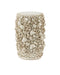 Though the Corfu Ivory Accent Table looks as if it is covered with lovely shells, the intricate shapes are actually handmade of ceramic. The table, which is also ceramic, has a round pedestal body that is shaped before it is covered with each of the shells, one at a time, by hand. This is a painstaking process. To complete the illusion that it is covered with sea-life, the surface has barnacle shapes on its top and bottom.