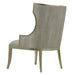 Chic, comfortable, and timeless, the Garson Silver Armchair is an updated take on the classic wingback design. The frame, made of mahogany with a silver finish, has a tailored feel as it meets the piping in the same fresh file linen as the upholstery fabric. The silvered material has a luminous sheen to it and is striated with gold to bring it a subtle texture. The pared-down lines of the chair's profile are fitting for many interior design styles. Introducing added sophistication is the fully upholstered back, which means it can float in a space.