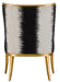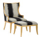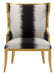Chic, comfortable, and timeless, the Garson Gold Armchair is an updated take on the classic wingback design. The frame is made of mahogany with an antique gold finish. The black and white chair is upholstered in an Otunga Kona fabric.