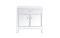 A perfect balance of contemporary style and practical utility, this chic one drawer, two doors mirror cabinet will enhance any room in your home. Featuring a hand painted finish, top quality mirror panels in distinctive mitered corner, jewel like crystal door knobs, it will provide you with stylish storage space you often need.