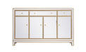 Sophisticated with a reflective touch, this 48" wide cabinet adds style and functionality. Six deep drawers provide ample storage space, each decorated with a crystal knob. Distinctively designed with mitered corners, all surfaces are inlaid with mirror panels.