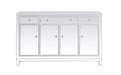 Sophisticated with a reflective touch, this 48" wide cabinet adds style and functionality. Six deep drawers provide ample storage space, each decorated with a crystal knob. Distinctively designed with mitered corners, all surfaces are inlaid with mirror panels.