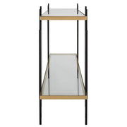 Gold Leaf Shelves Seem To Float Between Matte Black Iron Legs Reminiscent Of A Cityscape. Two Shelves Are Clear Tempered Glass.