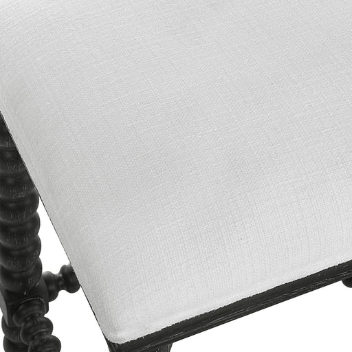 With Classic Simplicity, This Small Bench Features A Smooth Iron Base Finished In Satin Black, Upholstered In A Crisp Textured White Polyester.Deta...
