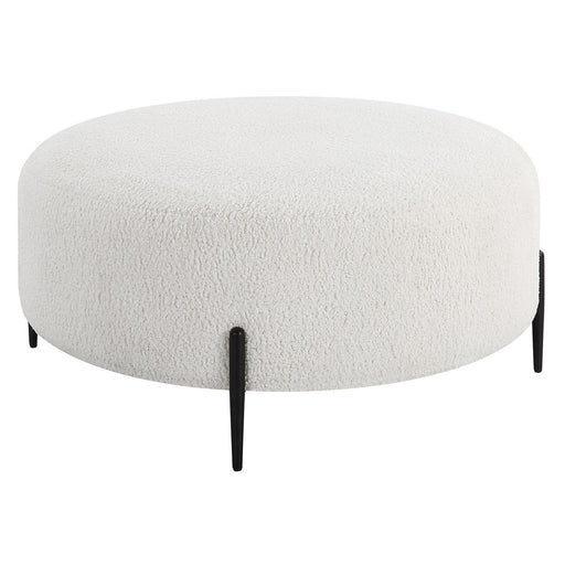 This Plush Ottoman Is Covered In A Luxurious White Faux Shearling, Suspended Within Satin Black Finished Metal Legs. Versatile And Stylish, This Pi...
