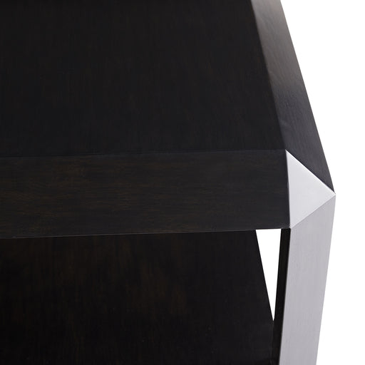 Geometric angles super sleek lines and a deep ebony finish make this a standout console. The light catches angled planes to reveal a tapered design...