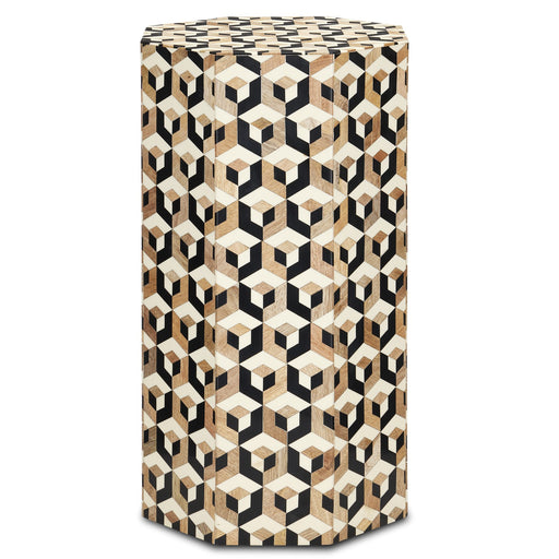 Made of mango wood, the Geo Accent Table is covered in pieces of natural mango wood, white bone, and black composite in an octagonal multi-colored ...