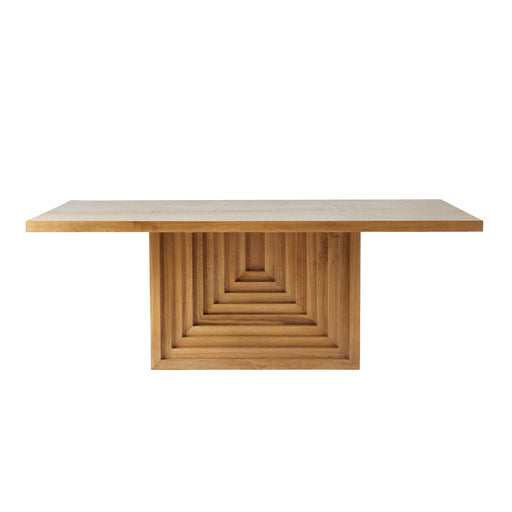 We over scaled the dimensions of a rectangular pedestal table to make it a monumental centerpiece. A stepped, reversed pyramid base offers a ceremo...