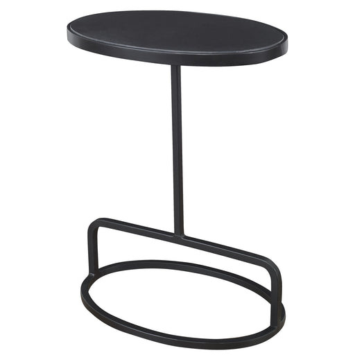 Showcasing A Clean-lined Design, This Accent Table Features An Inset Oval-shaped Honed Black Marble Top, Supported With A Hand Forged Iron Base Fin...
